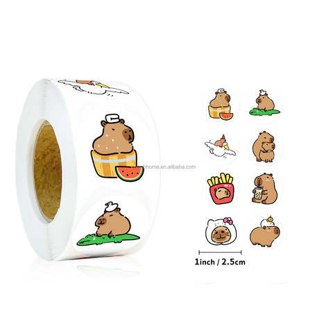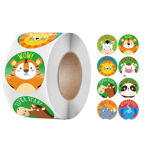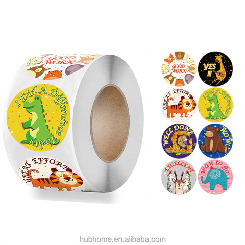 卸売価格自己粘着かわいい漫画動物報酬ステッカーロールラウンドラベルカスタムステッカー
