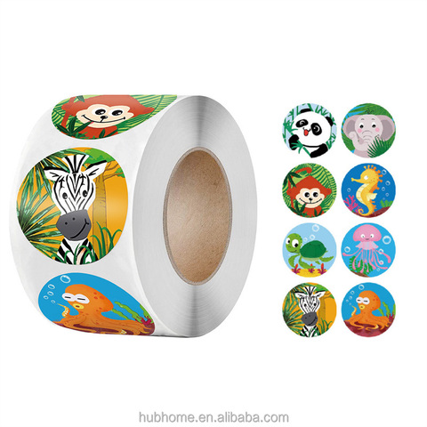 カスタム漫画動物ステッカーロール幼稚園赤ちゃん報酬ステッカー子供の漫画動物ラウンドステッカー