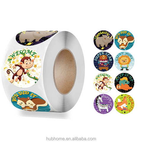 かわいい漫画の動物子供のためのカスタムステッカーロールラベルラウンドビニール紙学校教師用品子供報酬ステッカー印刷