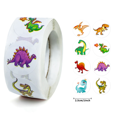 カスタムアニマルビニールステッカーロール防水恐竜パターン漫画ステッカーロールパッケージリワード子供ラウンドダイカットステッカーロール