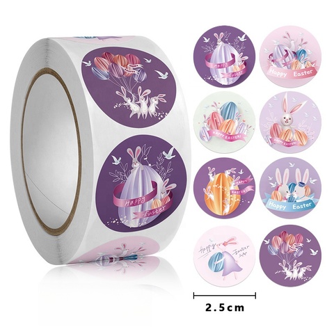 イースターテーマバニーエッグPvcステッカーロール漫画装飾ステッカー防水ギフトパッケージ丸型ステッカー